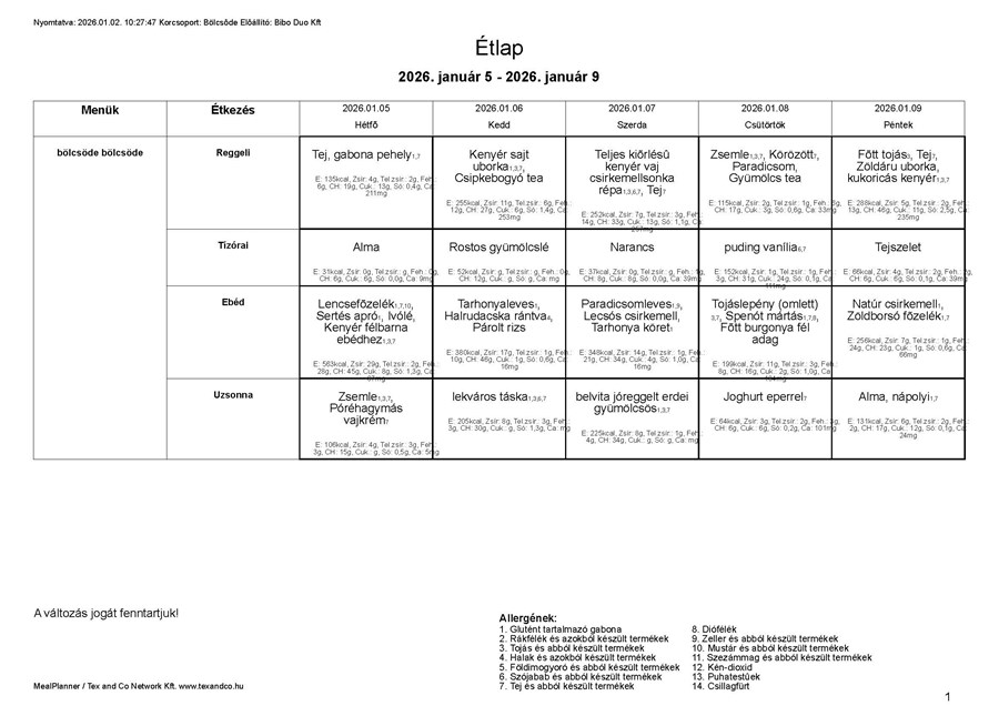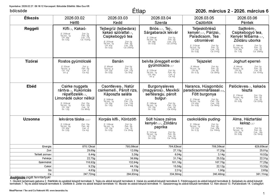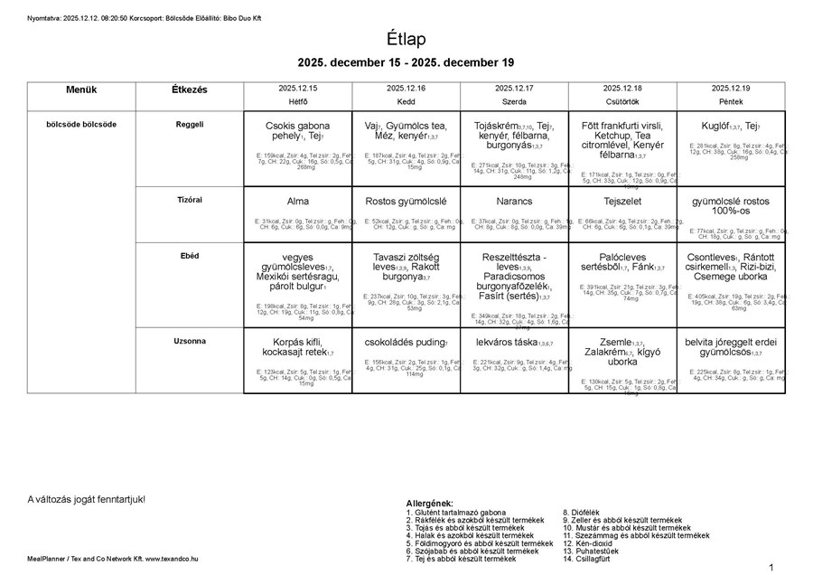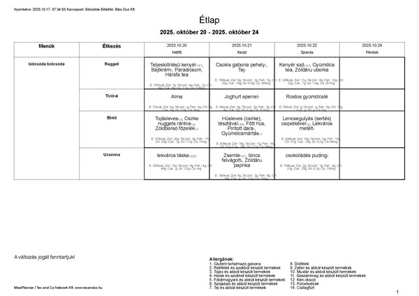 Bölcsőde Letöltés - Bölcsőde étlap (PDF formátumban) |